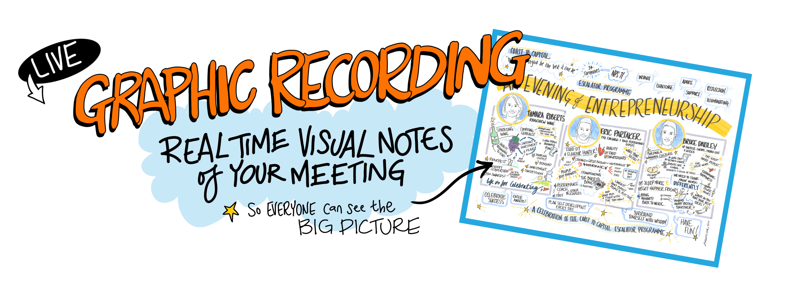 I facilitate events using visual meeting techniques, guiding your group through a process to get them from A to B.