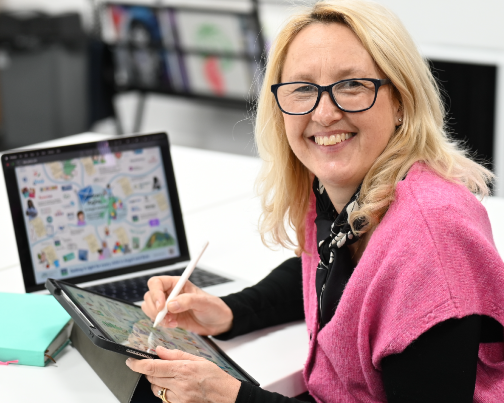 I offer a unique combination of creativity, attention to detail and an understanding of of your needs to create bespoke, high-quality visuals so your message stands out and resonates with your audience. I’ve been working as a Graphic Recorder and Illustrator since 2016 and have been facilitating visual meetings since the early 1990s – and I love my job!