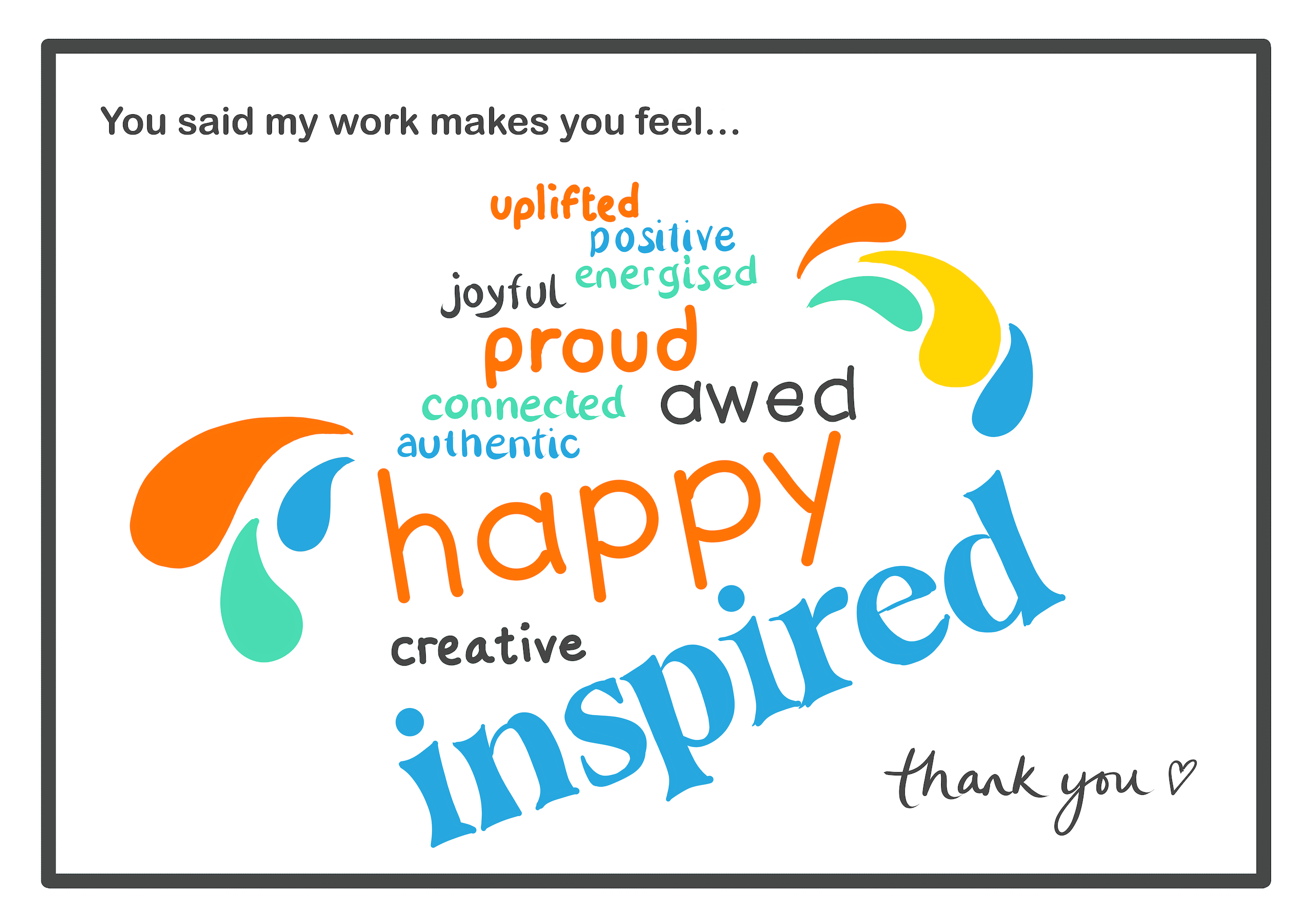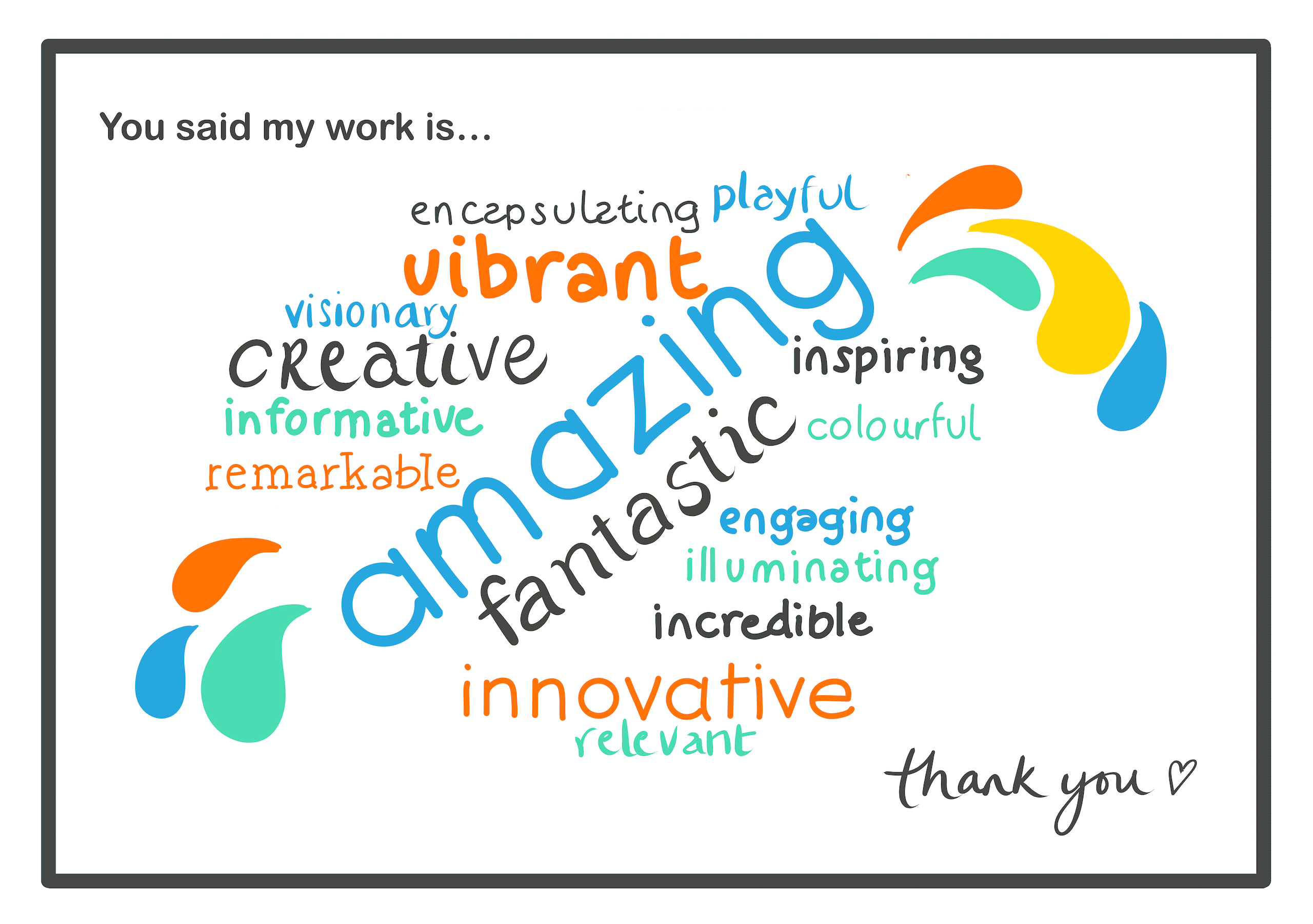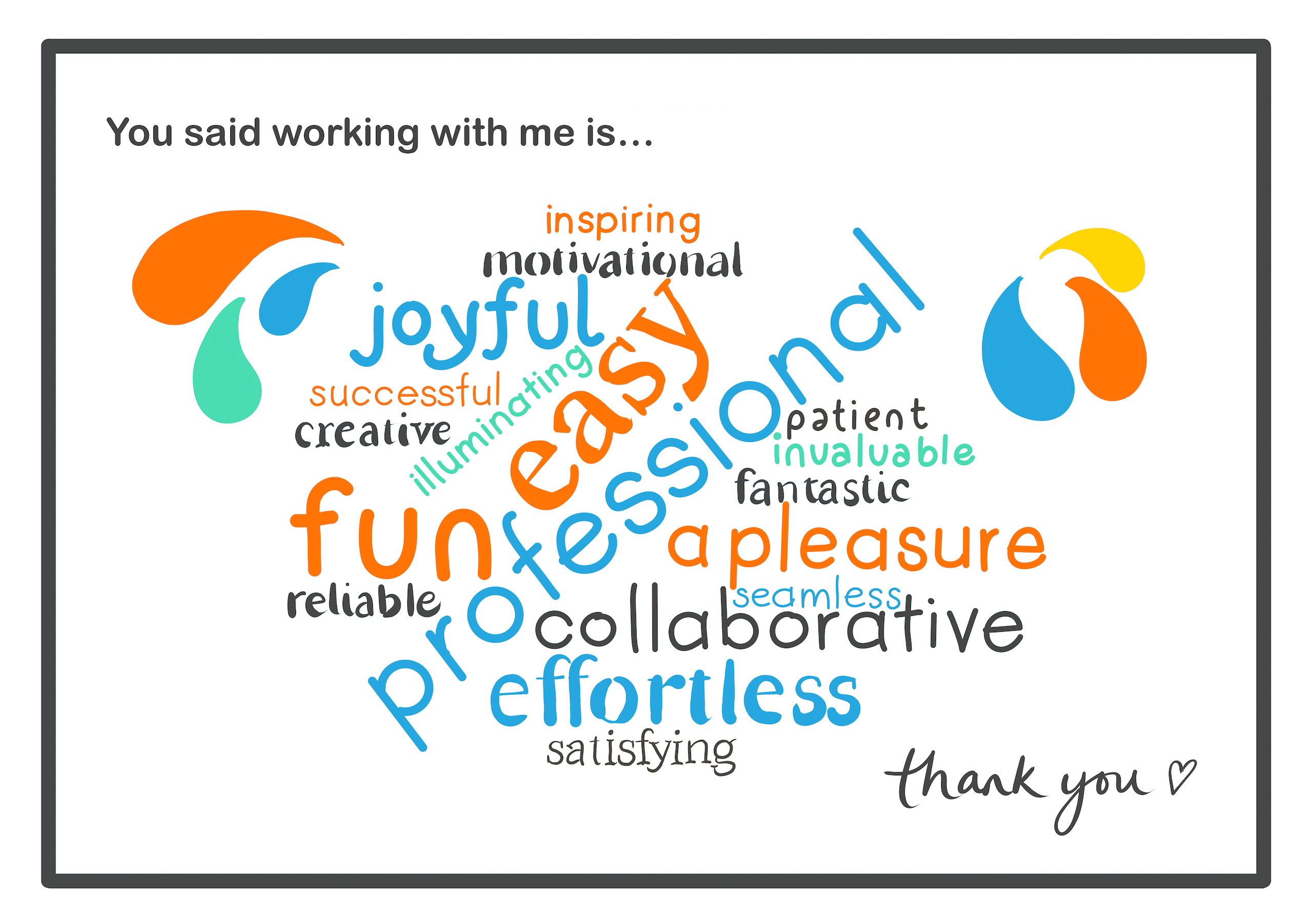 People say my work is amazing, innovative and vibrant, that working with me is fun, professional and easy and that my work makes them feel happy, inspired and proud.